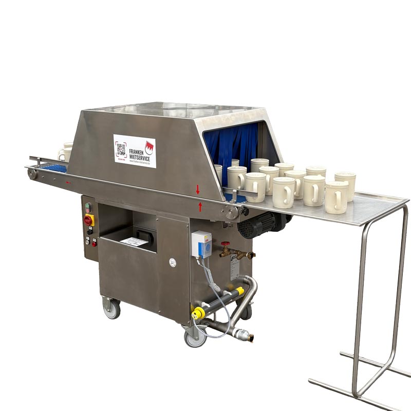 Bei Stadtfesten, Kirchweihen, Vereinsfeiern oder Volksfesten müssen oft hunderte Bierkrüge in kürzester Zeit gespült werden. Mit einer Bierkrug-Bandspülmaschine von Franken Mietservice gelingt das schnell, effizient und hygienisch. Die leistungsstarke Technik sorgt dafür, dass Krüge und Gläser im Dauerbetrieb zuverlässig sauber werden – ohne lange Wartezeiten.